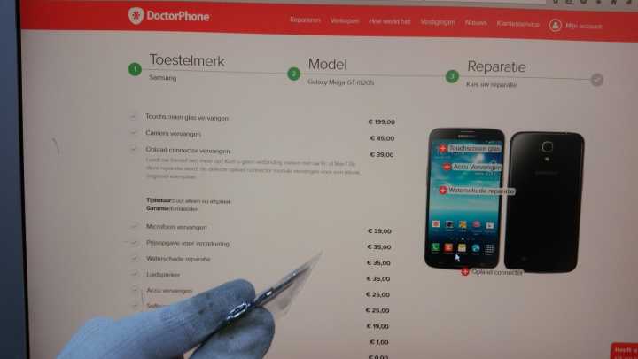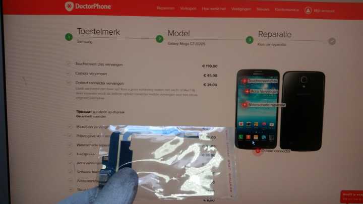 De totaalkosten voor het vervangen van de Galaxy Mega laadconnector zit op 39 euro incl BTW en 6 maanden garantie