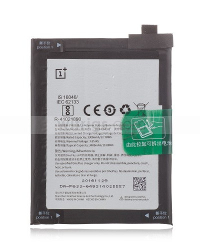 Omschrijving fabrikant:Battery, OnePlus OnePlus 3T, 3400 mAh